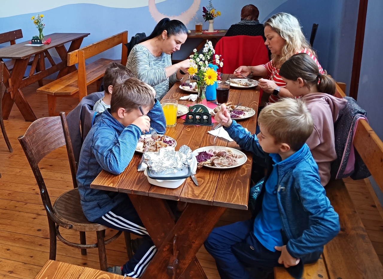 Oblíbené „Koněpruské posvícení s kachnobraním“ se letos v Koněprusích konalo přičiněním několika obětavých členek a členů našeho místního komunitního spolku a dalších ochotných pomocníků v sobotu 18.10.2025. Jako obvykle se již před polednem tvořila před naší školou fronta kachnychtivých strávníků, kteří se těšili na poctivou porci výborné posvícenské kachničky se zelím a knedlíkem. Zájem byl tradičně velký a tak se při výdeji porcí měli co ohánět. Také „Koněpruská kavárna“ jela na plné obrátky a pod náporem zájemců o výborné domácí dorty a zákusky praskala ve švech. Od 20 hodin večer pak sál naší školy hostil tradiční posvícenskou zábavu, při které k tanci a poslechu velmi dobře hrála kapela PHZS Petra Hašlera. Konání posvícenské zábavy podpořila letos částkou 10 000Kč nadace společnosti Tipsport.
