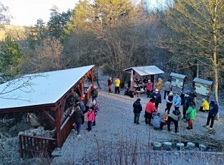 Již po devatenácté se sešli zájemci o procházku krásnou zimní přírodou Českého krasu ke každoročnímu „Pochodu po stopách Katky a Vlasty“ v sobotu 27.12.2025 v pravé poledne na koněpruské návsi. Na trasu vyrazilo 24 účastníků a zdolali ji již za cca. 2,5 hodiny. Kvůli rozbahněnému terénu vynechali návštěvu zatopeného lomu „Homolák“ a tak přes lom „Na Kobyle“, lom „Plešivec“ a „Červený lom“ došli k naší „Koněpruské vápenici“ o něco dříve. Počasí bylo přímo ideální s teplotou na nule a slunečným nebem. U vápenice již na účastníky čekal rozdělaný oheň, a tak si zde mohl každý opéct donesenou uzeninu, nebo se u ohně jen ohřát. Několik účastníků se pak vydalo ještě dál na „Kotýz“ a pro ostatní celá akce skončila před 16. hodinou.