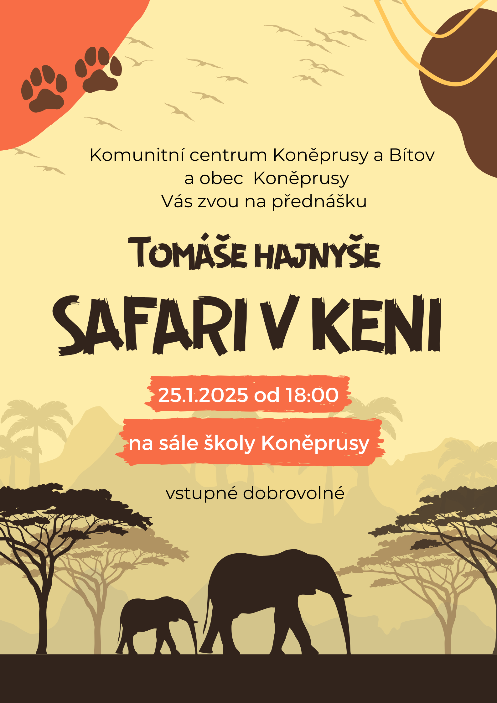 Safari v Keni dne 25.01.2025 od 18 hodin na sále školy v obci Koněprusy.